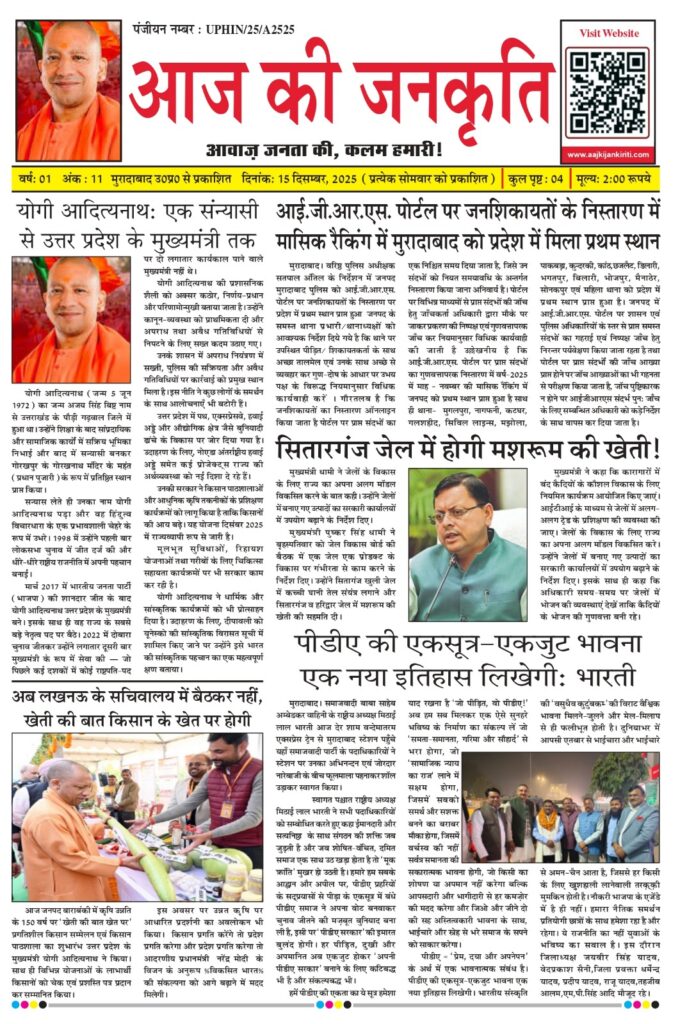मुरादाबाद शहर स्थित गाँधी मैदान (बुद्धि विहार) के प्रांगण में आयोजित एक ऐतिहासिक प्रेस वार्ता के दौरान मंडलायुक्त, मुरादाबाद द्वारा मंडल के पहले सांस्कृतिक महोत्सव ‘उदीषा: चौपाला साहित्योत्सव-2026 का आधिकारिक…