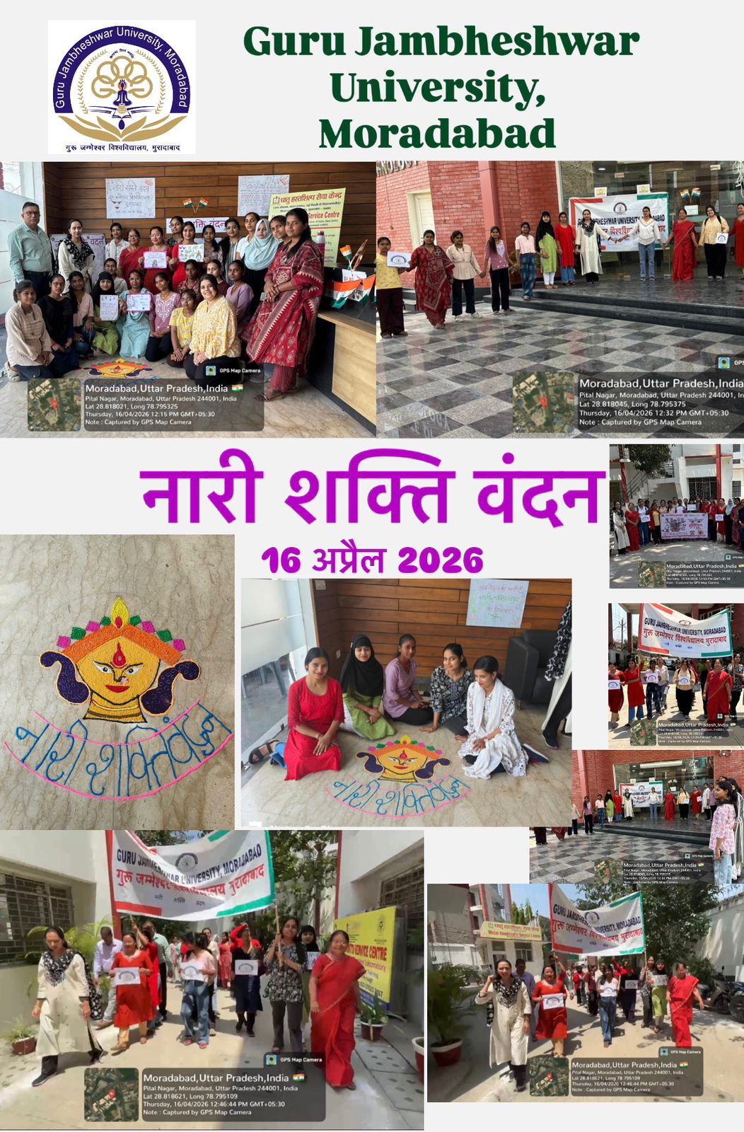 मुरादाबाद। गुरु जम्भेश्वर विश्वविद्यालय के एमएचएससी परिसर में “नारी शक्ति वंदन” विषय पर जागरूकता कार्यक्रम का आयोजन किया गया। कार्यक्रम में छात्र-छात्राओं ने उत्साहपूर्वक भाग लेते हुए महिला सशक्तिकरण का…