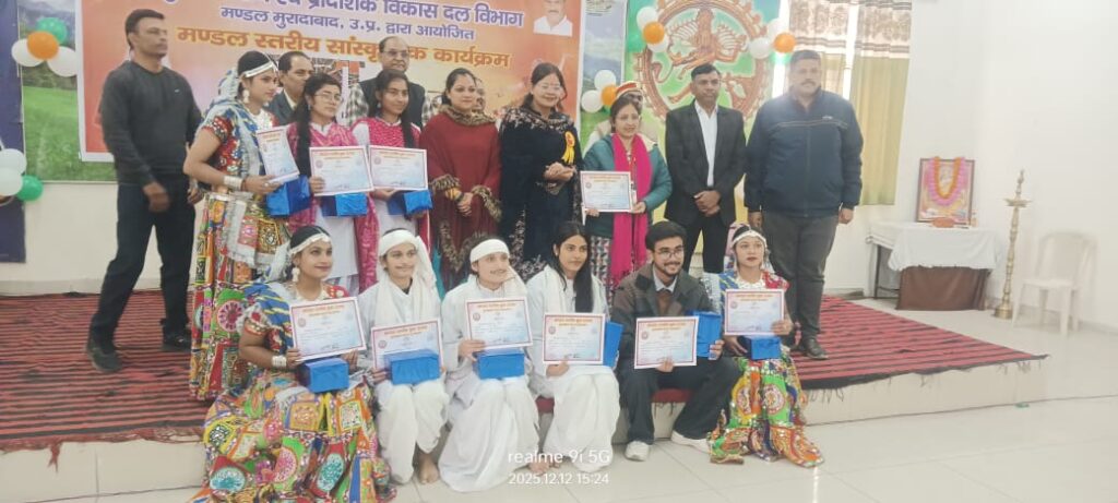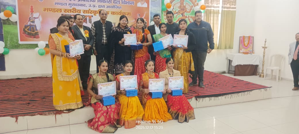 मुरादाबाद कल्याण एवं प्रादेशिक विकास दल विभाग द्वारा आरएसडी एकेडमी में मंडल स्तरीय युवा उत्सव का आयोजन हुआ।युवा उत्सव में सामूहिक लोक नृत्य सामूहिक लोकगीत, कविता लेखन कहानी लेखन पेंटिंग, डिक्लेमेशन की प्रतियोगिता कराई गई एवं विज्ञान के नवीनतम प्रोजेक्ट का प्रदर्शन किया गया। इस अवसर पर मुख्य अतिथि डॉ0 शेफाली सिंह चैहान जिला पंचायत अध्यक्ष मुरादाबाद ने विजेता कलाकारों को पुरस्कार एवं प्रमाण पत्र देकर सम्मानित किया। इस अवसर पर नरेश कुमार चैहान सेवानिवृत्ति जिला युवा कल्याण अधिकारी , सुरेश चंद शर्मा वैज्ञानिक अधिकारी, विशाल कुमार जिला युवा कल्याण अधिकारी रामपुर, क्षेत्रीय युवा कल्याण अधिकारी नवीन कुमार, पुष्पेंद्र कुमार, आशीष कुमार, जितिन, स्वीटी, अभिनव कुमार, पुष्पेंद्र कुमार, विनीत कुमार, वरिष्ठ सहायक रूद्रवीर सिंह उपस्थित रहे।