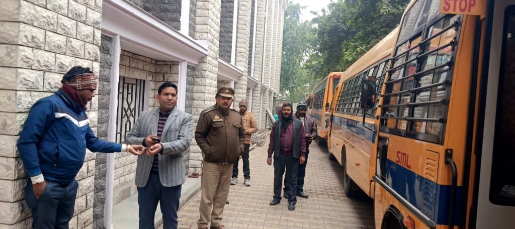 मुरादाबाद शासन के निर्देशानुसार एवं जिलाधिकारी के निर्देशन में यातायात पुलिस एवं परिवहन विभाग के द्वारा संयुक्त रूप से न्यू डेल्स मोंटेसरी स्कूल नया मुरादाबाद, स्प्रिंगफील्ड स्कूल न्यू मुरादाबाद, न्यू डेल्स स्कूल, सिविल लाइन, मुरादाबाद एवं पी.एम.एस. स्कूल सिविल लाइन मुरादाबाद के स्कूली वाहनों का निरीक्षण किया गया,धुंध व कोहरे के समय स्कूली वाहनों द्वारा बच्चों को सुरक्षित लाने-ले जाने हेतु सहायक संभागीय परिवहन अधिकारी हरिओम एवं यातायात निरीक्षक मिथिलेश सिंह के द्वारा निम्नलिखित हिदायतें दी गई —वाहन चालकों के लिए, हेडलाइट, फॉग लाइट व पार्किंग लाइट अनिवार्य रूप से चालू रखें। वाहन की गति धीमी व नियंत्रित रखें,ओवरटेकिंग से बचें। गलत दिशा में वाहन ना चलाएं हॉर्न का सीमित व सावधानीपूर्वक प्रयोग करें, खासकर मोड़ों व चौराहों पर।वाइपर, ब्रेक व स्टीयरिंग एवं सभी लाइट पूरी तरह दुरुस्त हों।वाहन के आगे-पीछे “स्कूल बस ” बोर्ड व रिफ्लेक्टर/रिफ्लेक्टिव टेप स्पष्ट हों। धुंध अधिक होने पर हैज़र्ड लाइट का प्रयोग करें। निर्धारित रूट से ही चलें,अनजान या संकरी सड़कों से बचें।चालक मोबाइल फोन का प्रयोग न करें और पूर्ण सतर्कता रखें। अटेंडेंट के लिए बच्चों को सड़क की ओर से नहीं, फुटपाथ/सुरक्षित ओर से चढ़ाएँ-उतारें।दरवाजा पूरी तरह बंद होने के बाद ही वाहन चलने दें। सभी खिड़कियों और दरवाजों के शीशे बंद रखें, यदि टूटा है तो उसकी मरम्मत कराए, बच्चों को सीट पर खड़े होकर यात्रा न करने दें। फर्स्ट एड बॉक्स एवं फायर एक्सटिंग्विशर साथ में रखें!विद्यालय प्रशासन के लिए, सभी स्कूली वाहनों का फिटनेस, बीमा व परमिट वैध हो, समय-समय पर चेक करते रहें,चालकों व अटेंडेंट का मेडिकल व पुलिस सत्यापन सुनिश्चित करें, यदि चालकों का कैरक्टर वेरीफिकेशन नहीं कराया गया है तो जल्द से जल्द कराए, चालकों का समय-समय पर सुरक्षा प्रशिक्षण कराएँ, आग लगने पर कार्यवाही एवं फर्स्ट एड का प्रशिक्षण कराए,धुंध व कोहरे में थोड़ी-सी लापरवाही भी गंभीर दुर्घटना का कारण बन सकती है। बच्चों की सुरक्षा सर्वोपरि हैं इसलिए यातायात के नियमों का पालन करें सुरक्षात्मक तरीके से वाहन चलाएं!