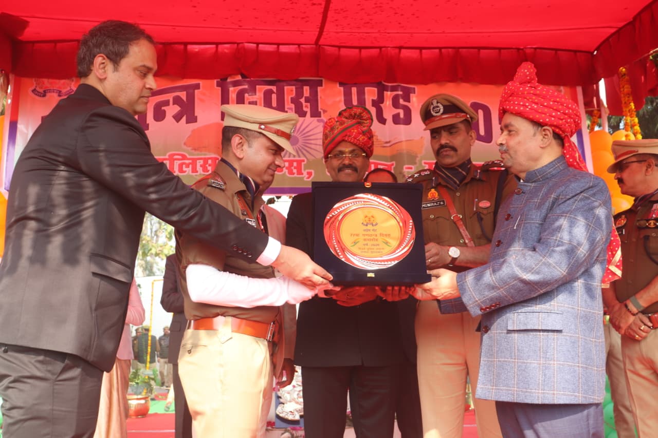मुरादाबाद सतपाल अंतिल, वरिष्ठ पुलिस अधीक्षक द्वारा गणतंत्र दिवस के अवसर पर रिजर्व पुलिस लाइन्स स्थित परेड ग्राउन्ड पर आयोजित परेड समारोह का मान-प्रणाम ग्रहण कर शुभारम्भ किया गया । परेड के मुख्य अतिथि जे0पी0एस0 राठौर(राज्य मंत्री, स्वतंत्र प्रभार सहकारिता विभाग उ0प्र0) द्वारा ध्वजारोहण के पश्चात परेड का निरीक्षण किया गया। परेड द्वारा हर्ष फायरिंग की कार्यवाही कर मंच के सामने से गुजरते हुये शानदार प्रदर्शन किया गया । तत्पश्चात वरिष्ठ पुलिस अधीक्षक द्वारा मुख्य अतिथि के साथ सभी को कर्तव्यपरायणता, देश की अखण्डता, सत्यनिष्ठा की शपथ दिलायी गयी । इसके पश्चात मुख्य अतिथि द्वारा परेड के प्रथम कमाण्डर राजेश कुमार क्षेत्राधिकारी हाईवे, परेड के द्वितीय कमाण्डर रविन्द्र प्रताप सिंह (निरीक्षक), तृतीय कमाण्डर उ0नि0 अमित कुमार व अन्य पुलिस अधिकारियों, कर्मचारियों को पुरस्कार,पदक,प्रशस्ति पत्र प्रदान कर सम्मानित किया गया । उक्त कार्यक्रम के अवसर पर आंजनेय कुमार सिंह (आयुक्त मुरादाबाद मण्डल) मुनिराज जी पुलिस उप-महानिरीक्षक मुरादाबाद परिक्षेत्र, मुरादाबाद, अनुज कुमार, जिलाधिकारी मुरादाबाद, श्री कु0 आकाश सिंह,पुलिस अधीक्षक ग्रामीण, कु0 रणविजय सिंह, पुलिस अधीक्षक नगर व अन्य माननीयों, पुलिस,प्रशासनिक अधिकारियों के साथ-साथ जनपद मुरादाबाद के अन्य गणमान्य व्यक्ति भी मौजूद रहे