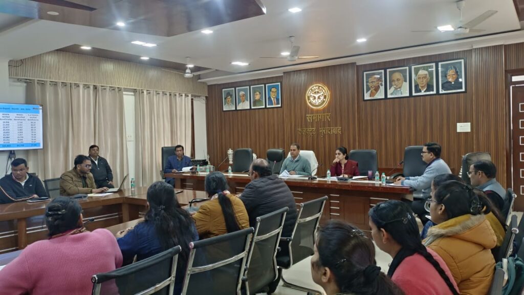 मुरादाबाद जिलाधिकारी अनुज सिंह ने कलेक्ट्रेट सभागार में आयोजित बैठक के दौरान आईसीडीएस विभाग के अंतर्गत आंगनबाड़ी केंद्रों के माध्यम से संचालित विभिन्न गतिविधियों के संबंध में विस्तृत समीक्षा बैठक की।