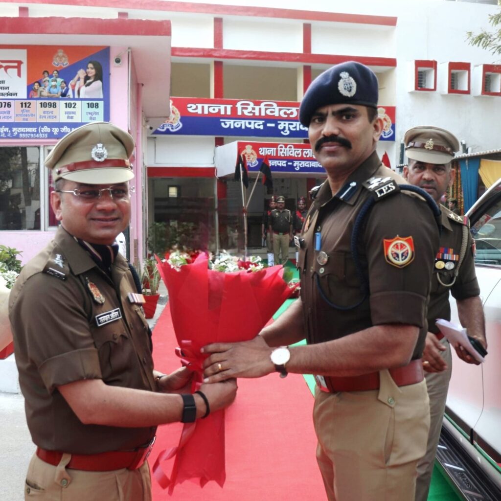 मुरादाबाद पुलिस उपमहानिरीक्षक मुरादाबाद, परिक्षेत्र मुरादाबाद द्वारा वरिष्ठ पुलिस अधीक्षक, मुरादाबाद व अन्य राजपत्रित अधिकारीगण के साथ थाना सिविल लाइन्स का वार्षिक निरीक्षण किया गया निरीक्षण के दौरान थाना कार्यालय/परिसर, मिशन शक्ति केन्द्र, भोजनालय, बैरिक, मालखाना, महिला/साइबर हेल्प डेस्क, कम्प्यूटर रूम, थाने की राजकीय सम्पत्ति व अभिलेख आदि को चेक किया गया, इस अवसर पर मिशन शक्ति केन्द्र का उद्घाटन भी किया गया, जिससे महिला सशक्तिकरण एवं सुरक्षा से जुड़े कार्यों को और मजबूती मिलेगी तथा सर्व संबंधित को आवश्यक दिशा निर्देश दिए गये एवं ग्राम प्रहरियों से वार्ता कर उन्हे शॉल, टॉर्च आदि आवश्यक वस्तुएं वितरित की गई ।