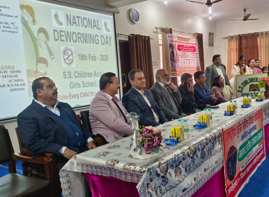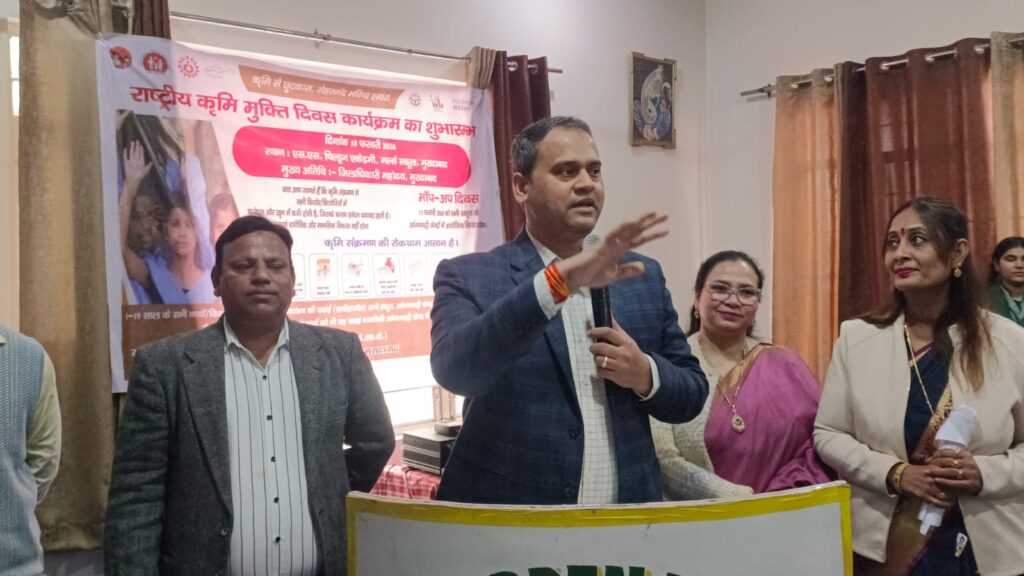 मुरादाबाद राष्ट्रीय कृमि मुक्ति दिवस के अवसर पर मुरादाबाद शहर स्थित एसएस चिल्ड्रन एकेडमी गर्ल्स स्कूल में छात्राओं को एलबेंडाजोल टेबलेट खिलाकर जिलाधिकारी अनुज सिंह ने अभियान की शुरुआत की।