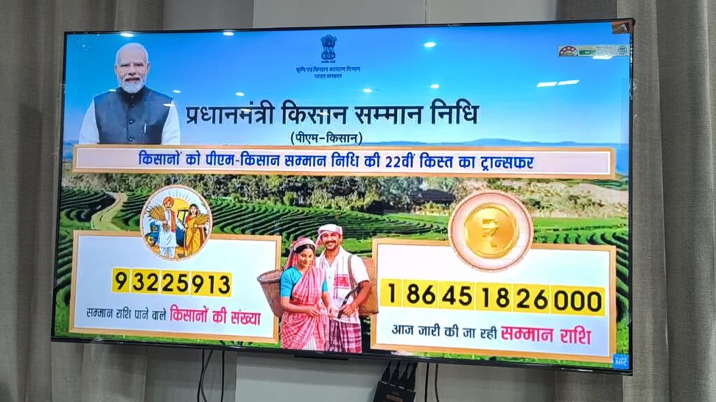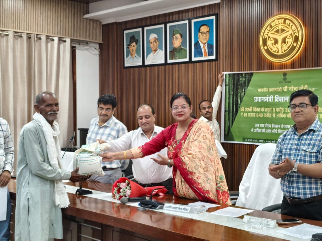 प्रधानमंत्री द्वारा गुवाहाटी, असम से पूरे देश के पात्र कृषकों के खाते में प्रधानमंत्री किसान सम्मान निधि की 22 वीं किश्त को निर्गत किया गया है, जिससे कृषकों मे खुशी की लहर दौड़ गयी है । उक्त अवसर पर मुरादाबाद में जनपद स्तर पर कलेक्ट्रेट सभागर में, समस्त राजकीय कृषि बीज भण्डारों पर, कृषि विज्ञान केन्द्र बिलारी एवं ठाकुरद्वारा पर तथा ग्राम पंचायत स्तर पर प्रत्येक पंचायत भवनों पर किसानों को कार्यक्रम का लाइव प्रसारण दिखाया गया,जिसमें कृषक गण एवं जनप्रतिनिधिगणों द्वारा प्रतिभाग किया गया ।जनपद स्तर पर कलेक्ट्रेट सभागार, मुरादाबाद में आयोजित कार्यक्रम में डा. शैफाली सिंह चौहान ,जिला पंचायत अध्यक्षा,मुख्य अतिथि रहीं।सर्वप्रथम सन्तोष कुमार द्विवेदी उप कृषि निदेशक द्वारा जिलापंचायत अध्यक्षा ,संयुक्त कृषि निदेशक ,मुरादाबाद मंडल सहित उपस्थित समस्त अधिकारियों, कर्मचारियों,अन्नदाता किसान भाइयों,पत्रकार बन्धुओं का स्वागत करते हुए कार्यक्रम का शुभारम्भ किया गया। उप कृषि निदेशक,मुरादाबाद ने अवगत कराये कि जनपद मुरादाबाद मे 242724/ कृषकों के खाते मे प्रधानमंत्री किसान सम्मान निधि की 22 वीं किश्त कुल रु.48.5448 करोड़ की धनराशि अंतरित होगी। कृषि विभाग की योजनाओं के विषय मे विस्तार से चर्चा की गई जायद फसल मे गन्ना अंत: फसली मे नि:शुल्क मूंग बीज मिनिकीट के 1714 के लक्ष्य के सापेक्ष 1594 की बुकिंग कंफर्म हो चुकी है तथा अवशेष 120 नि: शुल्क मूंग बीज मिनिकीट की बुकिंग चल रही है,जिसकी अंतिम तिथि 15-03-2026 है एवं कृषकों से अनुरोध किया गया कि इच्छुक पात्र कृषक तत्काल कृषि विभाग के पोर्टल पर तत्काल आन लाइन आवेदन कर दें। कृषकों से फार्मर रजिस्ट्री एवं फेमिली आई डी बनवाये जिसने हेतु अनुरोध किया गया।डा.शैफाली सिंह चौहान , जिला पंचायत अध्यक्षा ,मुरादाबाद द्वारा प्रधानमंत्री किसान सम्मान निधि के लाभार्थियों को प्रमाणपत्र तथा नि: शुल्क मूंग बीज मिनिकीट कृषकों को वितरति किया गया।कार्यक्रम मे उपस्थित समस्त व्यक्तियों द्वारा प्रधानमंत्री के किसान सम्मान उत्सव कार्यक्रम के लाइव प्रसारण को ध्यान से सुना एवं देखा गया है।कलेक्ट्रेट मुरादाबाद मे आयोजित कार्यक्रम मे प्रशान्त कुमार, संयुक्त कृषि निदेशक मुरादाबाद मंडल, मुरादाबाद , जी. बी. पाठक जिला विकास अधिकारी ,डा. योगेन्द्र कुमार ,भूमि संरक्षण अधिकारी ,डा. राजेन्द्र पाल ,जिला कृषि अधिकारी, हर्षित चौहान,उप संभागीय कृषि प्रसार अधिकारी सदर,मुरादाबाद,राम किसन ,जिला गन्ना अधिकारी,आमरेन्द्र श्रीवास्तव एक आर कोआपरेटिव एवं अन्य जिला स्तरीय अधिकारी,कृषि विभाग के कर्मचारी एवं भारी संख्या मे कृषक गण ,एफपीओ के सदस्य गण मौजूद रहे। कार्यक्रम का संचालन चन्द्रहास द्वारा क
