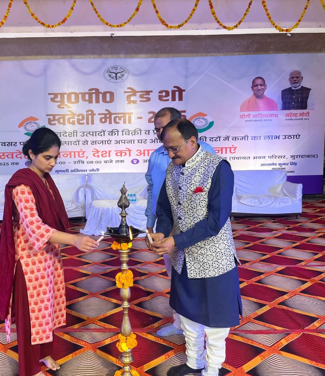 पंचायत भवन में आयोजित UP ट्रेड शो स्वदेशी मेला 2025 में मुख्य अतिथि के रूप में सहभागिता कर दीप प्रज्वलन किया एवं कार्यक्रम का शुभारंभ किया।